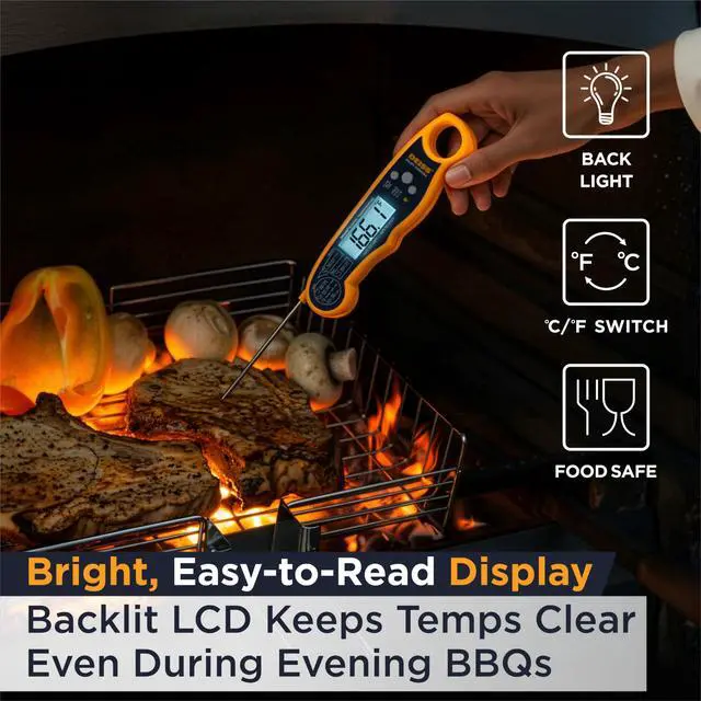 Insert the probe for a fast, clear reading, and use the backlight to see temps in dim light.