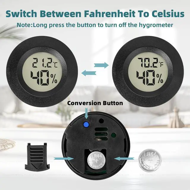 WIDELY USED: The indoor thermometer hygrometer widely use in greenhouse, garden, guitar case, incubators, brooders, office, cellar, fridge, closet any other place that requires monitoring of temperature and humidity levels.