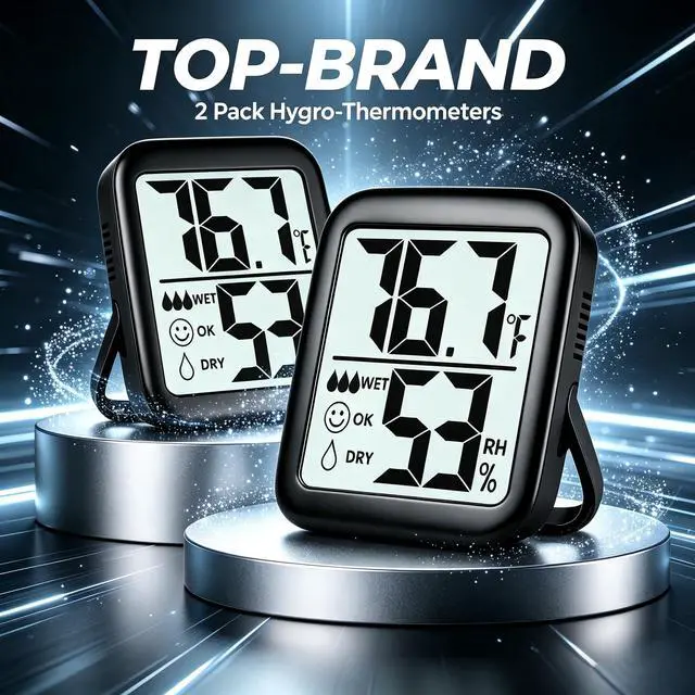2 Pack Room Thermometer for Home, Hygrometer Indoor Humidity Meter Gauge, Digital Temperature and Humidity Monitor Sensor for House, Terrarium, Incubator, Greenhouse - Battery Included