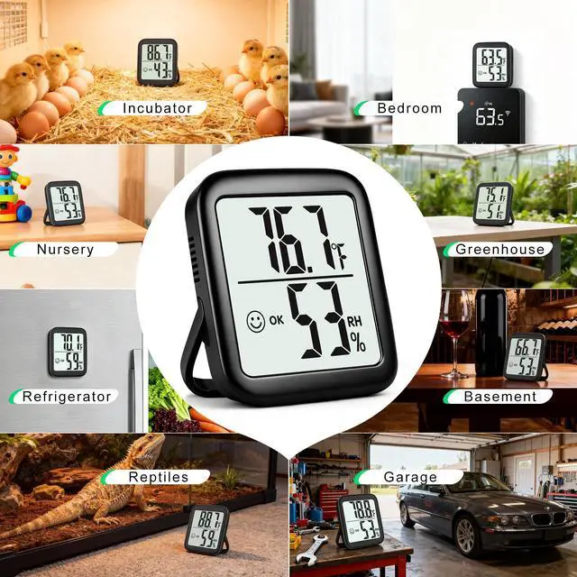 Monitor your indoor environment with this indoor hygrometer thermometer. Get precise, real-time temperature & humidity readings for any room, such as living room, bedroom, nursery, office, greenhouse, warehouse, garage, , cellar, basement, incubator, terrarium, incubator to ensure optimal comfort.