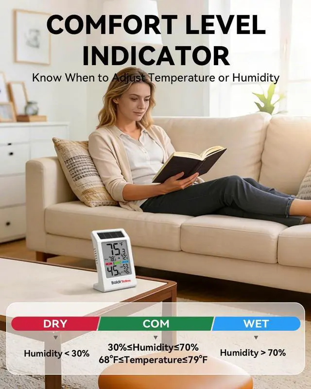 Easy for seniors and busy users to read temperature and humidity in homes, offices, and classrooms.