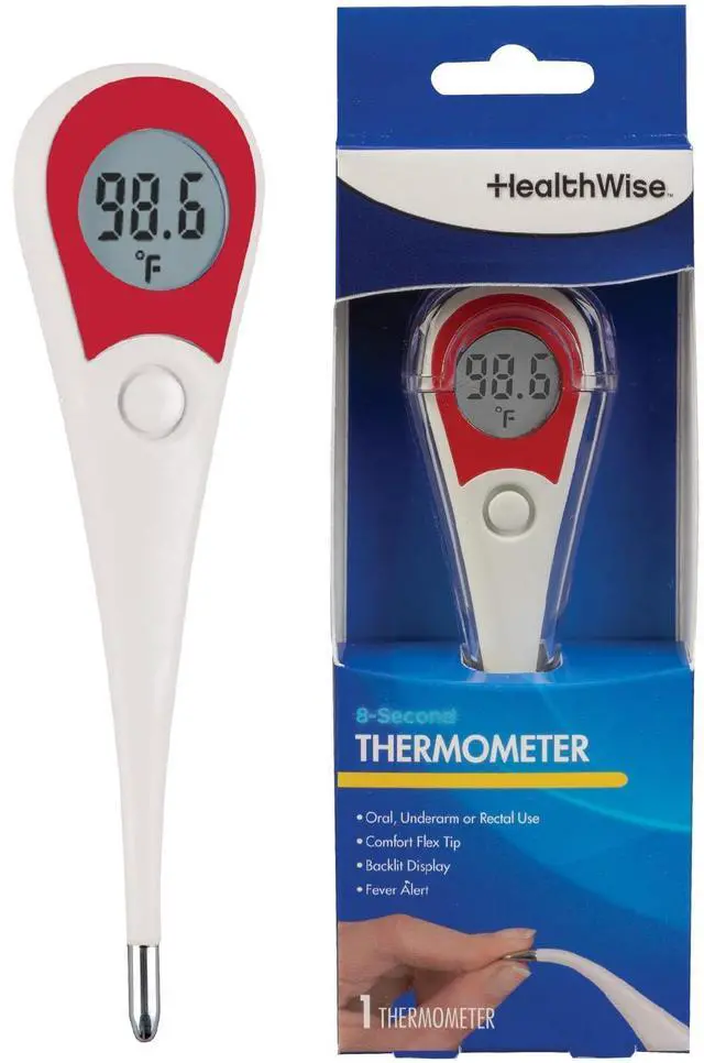 OUTSTANDING FEATURES AND BENEFITSWhole family friendly, the Healthwise 8-Second Digital Thermometer includes an easy-view backlit display, fast measurements with an alert when the reading is complete, 5 probe covers and hygienic storage case.