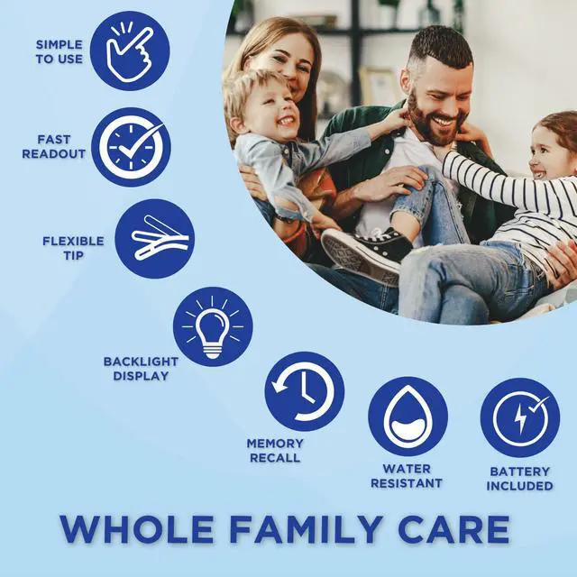 COMPLETE TEMPERATURE MONITORING all of the features you look for in a traditional stick thermometer: clinical accuracy, flexible comfort probe tip, Fahrenheit/Celsius switchable measurements, last-reading memory recall, backlit display with fever alert notification, automatic shut-off plus battery included. Lifetime limited warranty.