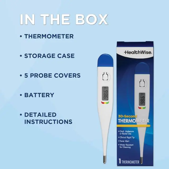 Digital thermometers are a convenient way to track a fever for children and adult at home. Healthwise thermometers are tested and manufactured to the exacting standards of todays healthcare professional. Simple to use, in approximately 10 seconds, know if a fever is present. Beeps when the reading is done, with an added beep alert when a fever is present. Adult use (or use under Adult Supervision Only). For best performance, read the included instructions before use. Always discuss changes in your medication with a healthcare professional.