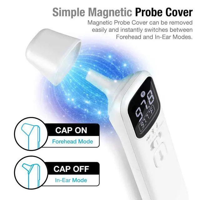 3 Measurement Modes - Test with three unique and accurate measurement modes including: in-ear, forehead, and even object.