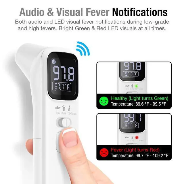 Just One Press - At just the simple push of a button, instantly receive helpful measurements and notifications regarding temperature or fever.