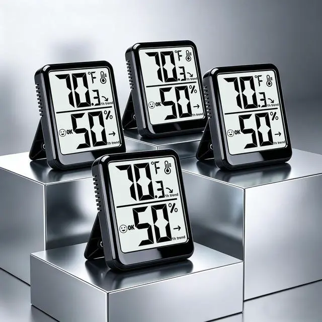 Compact Design, Space-Saving: This indoor thermometer hygrometer features an adjustable kickstand, easy to carry. It is suitable for bedroom, baby room, greenhouse, plants, incubator, office, garage, car, basement, bathroom, camper, crawlspace, warehouse