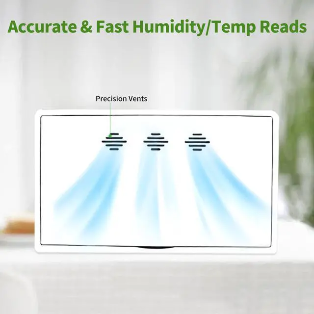This hygrometer tracks instant temp & humidity shifts with timely 15-second updates. Boasting ±1°F/°C temp and ±5% humidity accuracy, it ensures precise humidity adjustments for comfy home air!