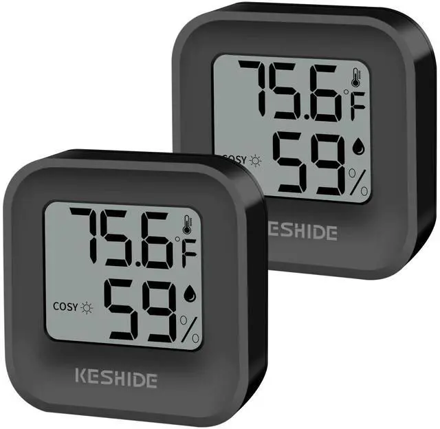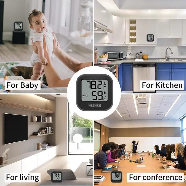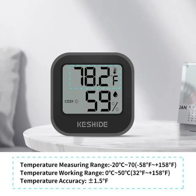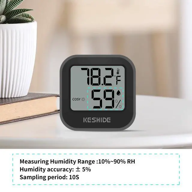 [Air Comfort Indicator]: KESHIDE humidity meter features 3 different face icons to indicate DRY/COMFORT/WET air condition. Remind you to adjust your humidifier or dehumidifier accordingly and help you will always live in the most comfortable environment