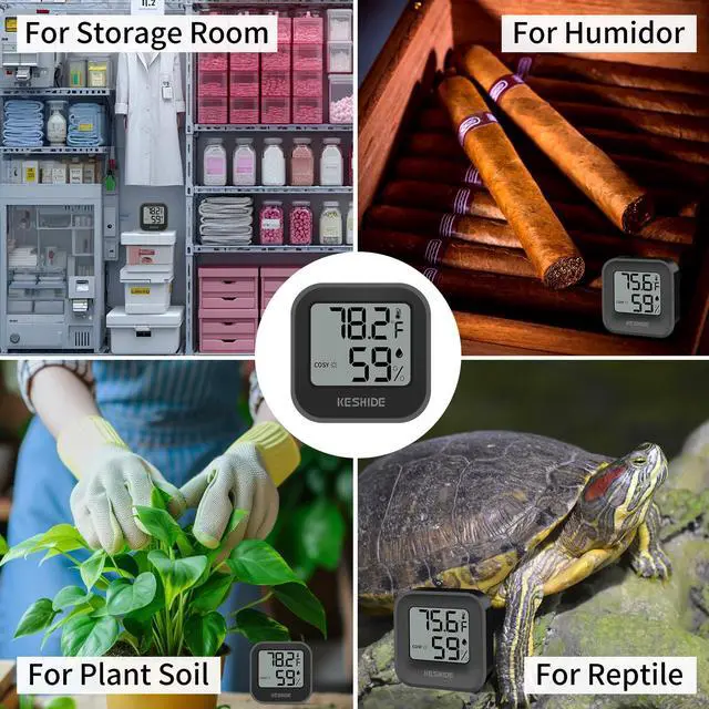 Widely ApplicationThis mini hygrometer features a compact 2*0.8-inch diameter design that stands up and can be installed multiple times in aquariums, homes, offices, pet habitats (reptiles, hermit crabs), and storage areas - perfect for monitoring pet health or sensitive equipment.