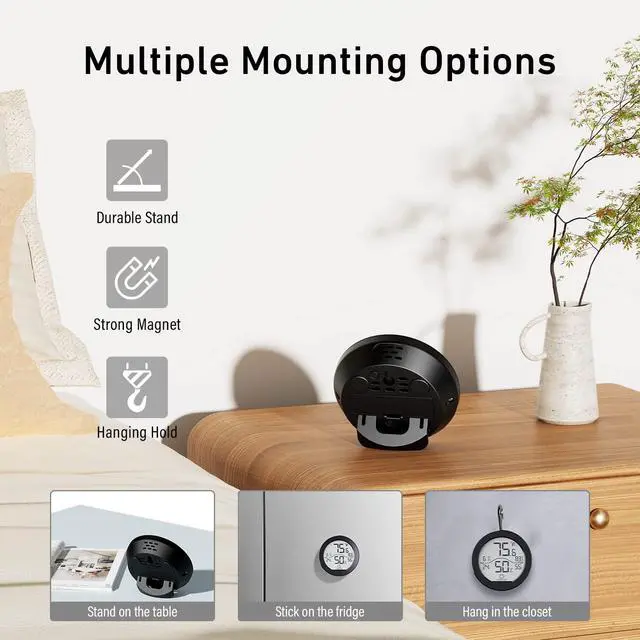 This indoor temperature and humidity monitor has a high accuracy of ±2~3%RH and ±1-degrees F, the data measurements are updated every 10 seconds so you are always up to date.