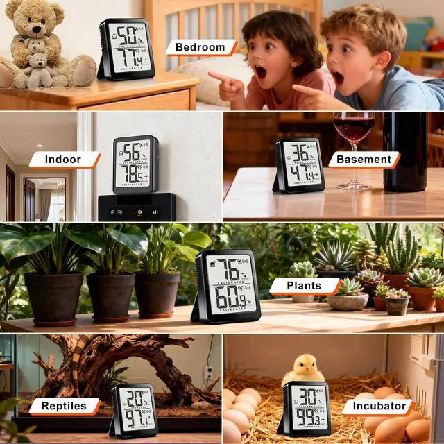 Monitor your home's climate with this 2-pack mini thermometer hygrometer. Get precise, real-time temperature & humidity readings for any room, nursery, or office to ensure optimal comfort.