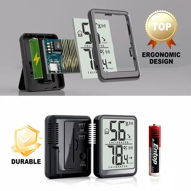 Dry, Comfort, or Wet? Our hygrometer's visual icons give you an instant humidity status check. Know precisely when to humidify or dehumidify for ideal comfort.