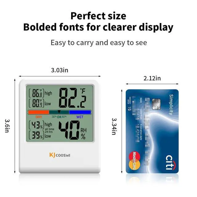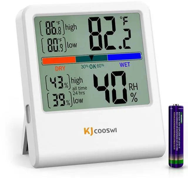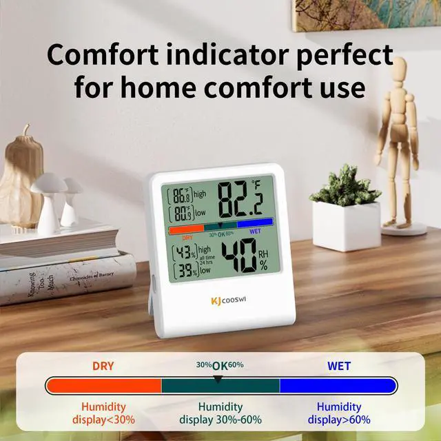 Air Comfort Indicator: The thermometer includes a colorful air comfort indicator that indicates dry/comfortable/wet, checking your real-time air conditions at a glance to ensure proper room temperature and humidity.