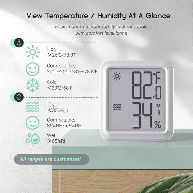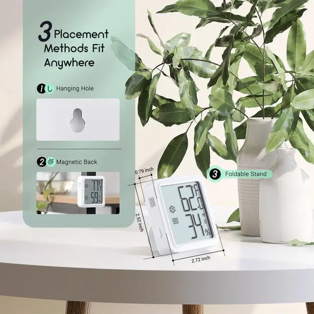 The bracket and hanging holes on the back are more convenient to place where you desired a spot to monitor temperature and humidity.