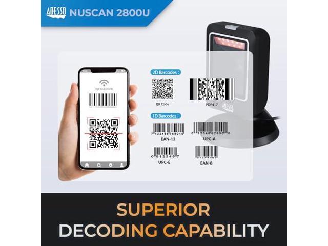 Adesso 2D Omnidirectional USB Desktop Hand-Free CMOS Barcode Scanner 30 FPS