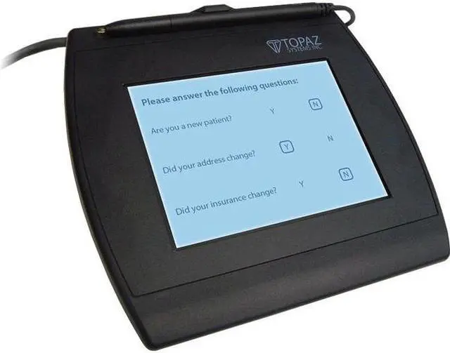 SignatureGem® LCD 4x5 is Topazs advanced, more durable LCD (4.6"W x 3.4"L) electronic signature pad that displays "electronic ink" under the pen tip during signing. The large, rugged signing surface make this a versatile pad for the most demanding applications.