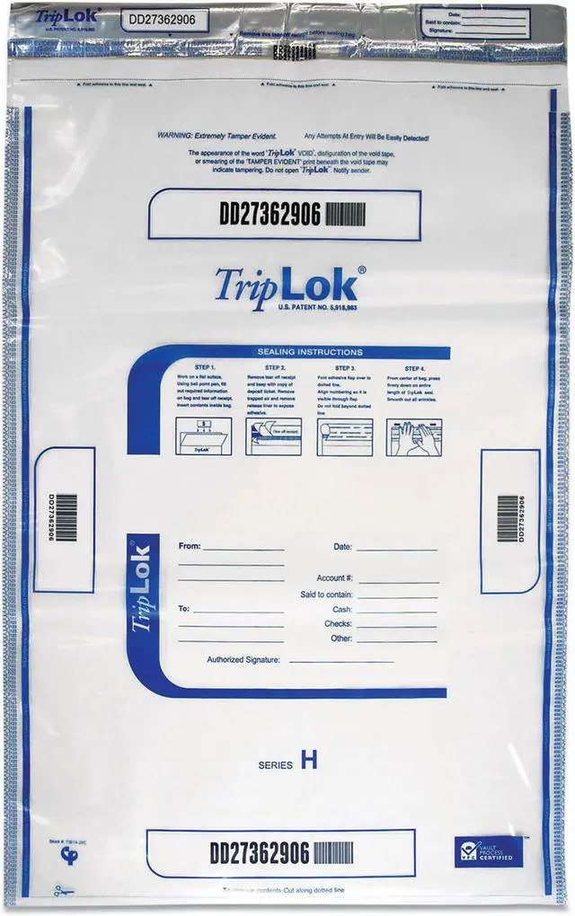 Triplok Deposit Bag, 19 x 23, 4 mil Thick, Plastic, Clear, 50/Pack