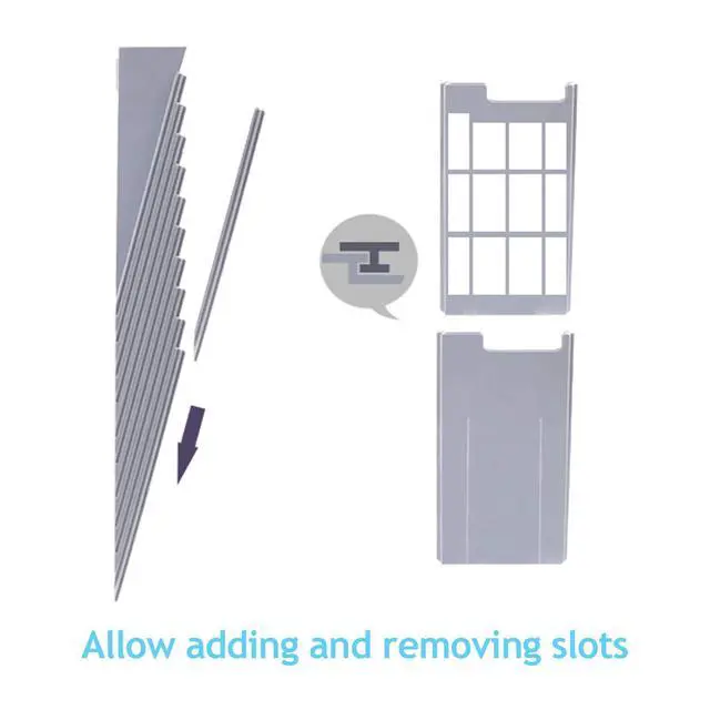 There is a slot to hang by a screw on the back , it won't fall out when vertical.
