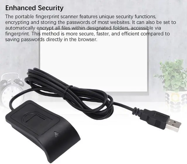 3. Enhanced Security: The portable fingerprint scanner features unique security functions, encrypting and storing the passwords of most websites. It can also be set to automatically encrypt all files within designated folders, accessible via fingerprint. This method is more secure, faster, and efficient compared to saving passwords directly in the browser.