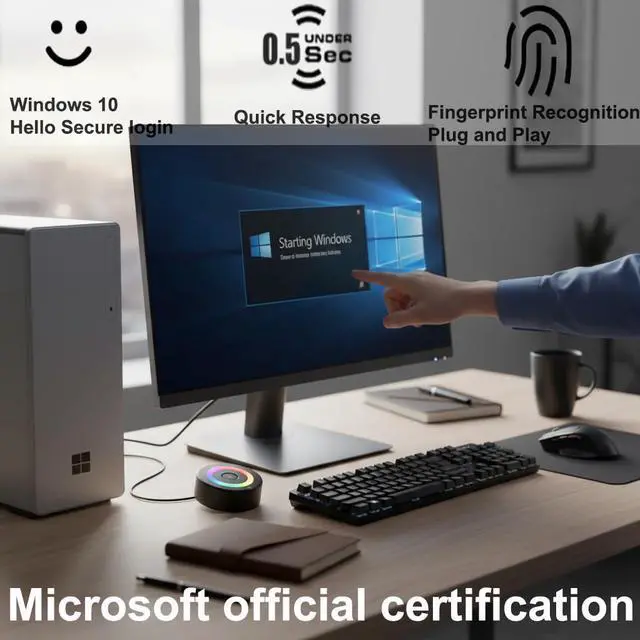 360° Recognition & 1-Second Login - Advanced scanner with 360° omnidirectional reading. Matches fingerprints in 1 second, enabling Windows Hello password-free login for Windows 10/11.