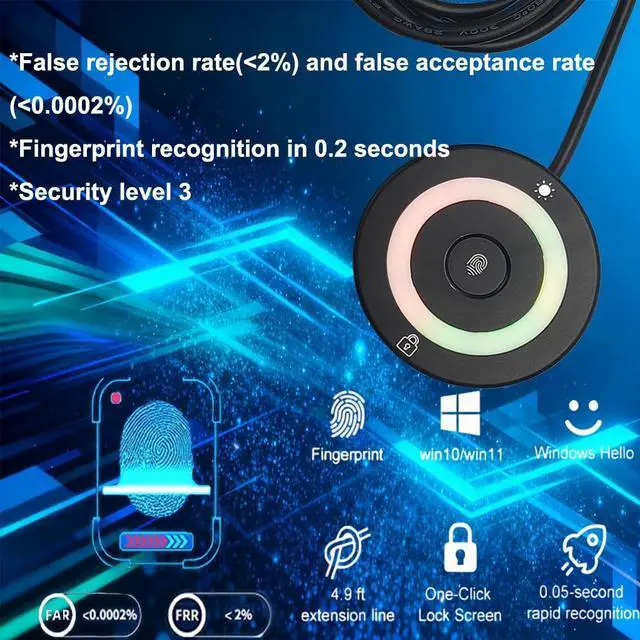 USB Fingerprint Reader Fingerprint for Windows10/11, Tap and Go with 360° Touch with 5ft Extension Cable-Windows Password Free Operation Windows Hello Automatic Driver Installation