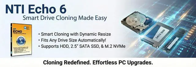 NTI Echo 6 | New for 2024 | Available in Download | The Best Cloning Software. It Simply Works | Make an exact copy of HDD, SSD or NVMe SSD, with Dynamic Resizing
