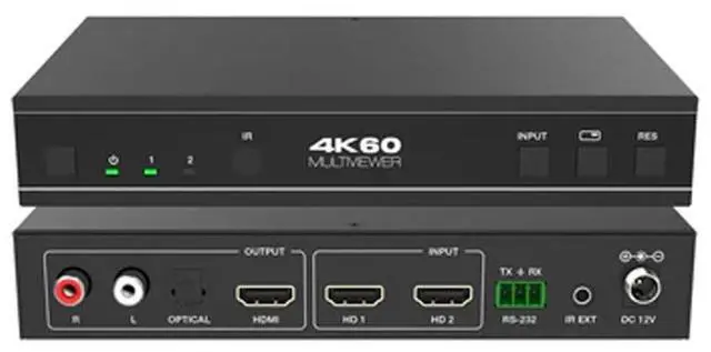 DVDO-Switcher-21SS-MV offers 4 different display modes including a single view mode and 3 multiview modes allowing both sources to be displayed on the same screen. The unit can be controlled via the front panel buttons, IR remote, OSD menu navigation, control software or RS-232.
