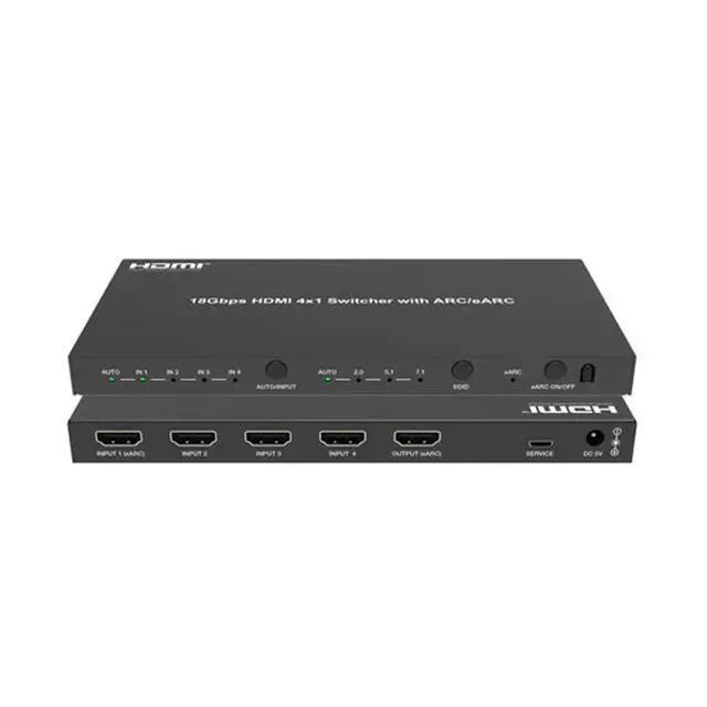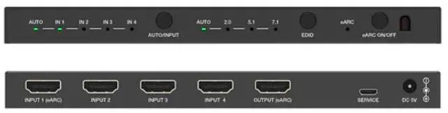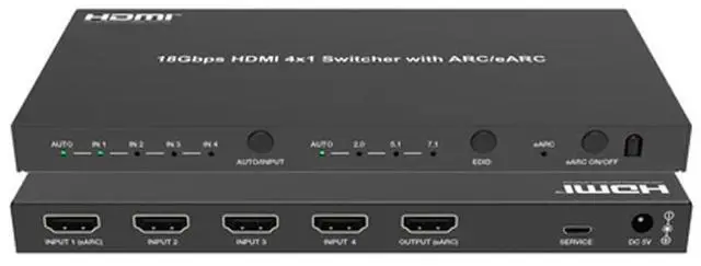 DVDO-Switcher-41-ARC is an 18Gbps HDMI 4x1 Switcher that can switch any four HDMI sources to one HDMI display. It supports video resolutions up to 4K2K@60Hz RGB/YCbCr 4:4:4, ARC/eARC function (only for the "INPUT 1 (eARC)" port), 10bit HDR and CEC function. It also supports advanced EDID management (AUTO/2.0CH/5.1CH/7.1CH selectable). It offers flexible control via front panel buttons and IR remote control.