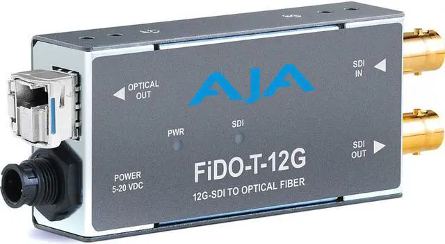 FiDO-T-12G offers unmatched flexibility and cost efficiency for 12G/3G/HD/SD-SDI Fiber conversion, allowing for cable runs up to 10 km (32, 808 ft) over standard single-mode fiber optic cable. FiDO converters use a compact, low-profile enclosure that works well in tight spaces around and behind equipment racks, trucks and on camera. Simplex connection (LC connector) 12G-SDI input, which also supports 6G/3G/HD/SD-SDI Reclocked loop through of SDI input Uses 5-20VDC power (DWP-U-R1 universal power supply included) 5 year warranty Universal Power Supply All AJA Mini-Converters ship with a universal power supply that includes international plug connections for use around the world.