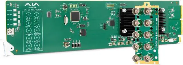 With Ethernet access, the frame can be accessed via the Dashboard application for overall frame communication. Optional per-card Ethernet access can be installed in the frame for advanced communication with compatible openGear cards. The AJA Mini-Matrix mobile app provides information on the complete line of AJA Rackframes and cards, helping you find the right converter for any situation. The free AJA Mini-Matrix app for iPad and iPhone is available now in the Apple iTunes Store, making it easier than ever to access product information and details. Choose the OG-12GM openGear 12G-SDI to/from SDI Muxer/DeMuxer for a reliable, advanced solution to your professional video and audio needs.