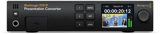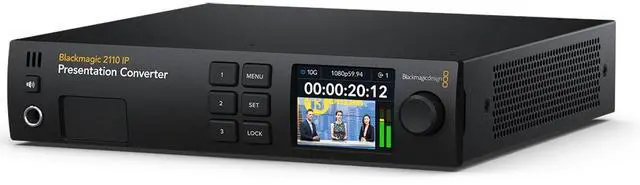 The Blackmagic 2110 IP Presentation Converter is part of Blackmagic Design's extensive range of SMPTE-2110 IP video products, which includes converters, video monitors, audio monitors, and cameras. These products support Ultra HD using cost-effective 10G Ethernet, making them ideal for broadcast, live production, and AV applications. This converter model is designed to integrate SDI equipment into 2110 IP broadcast systems. It can be installed in equipment racks right next to the equipment you're converting, providing a low-cost solution to transform your video equipment to SMPTE-2110. The Blackmagic 2110 IP products conform to the SMPTE ST-2110 standard for IP video, which specifies the transport, synchronization, and description of 10-bit video, audio, and ancillary data over managed IP networks for broadcast.