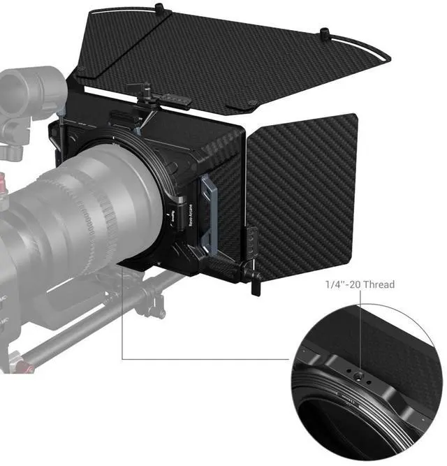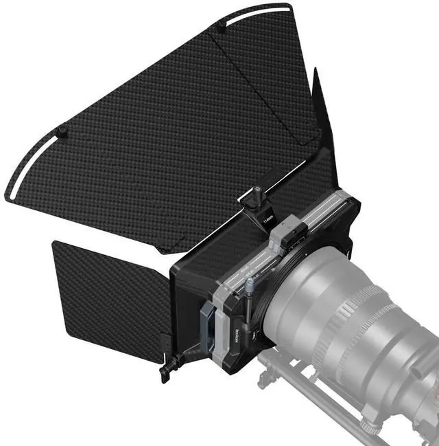 These coatings are also waterproof, oil-resistant, and scratch-resistant, ensuring longevity and performance. Please note that this matte box is not compatible with 2mm thick, 100 x 100mm, and 100 x 150mm slide-in filters. It cannot accommodate a slide-in filter and circular filter simultaneously and is not suitable for circular filters with an outside diameter larger than 100mm. For optimal use, place the Filter Frame (4x4") 3648 in the innermost slot near the lens and the VND Filter Kit 3651 in the same slot after removing the lens hood when necessary.