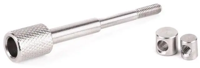 With the UMB-1 Bellows Clamping Hardware Set, you'll have everything you need to securely fasten your bellows to your camera or other photography equipment. This set includes a sturdy thumbscrew and two durable dowel pins, all crafted from high-quality stainless steel for maximum durability and longevity. These components are integral to the rear assembly process, working together to firmly pinch and hold the bellows in place. Designed with versatility in mind, this professional-grade hardware set is compatible with a wide range of cameras and lenses, making it an adaptable solution for various shooting scenarios.