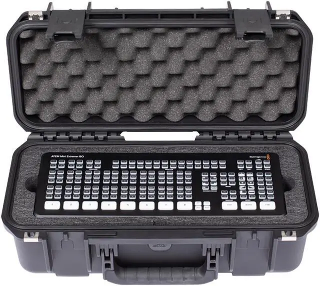 The iSeries 3i-17066ATM features a custom foam interior that's been form cut to accommodate the Blackmagic Design ATEM Mini Extreme or ATEM Mini Extreme ISO with a large additional pocket (measuring 13 x 4 x 2.75") below for the power supply and other accessories.