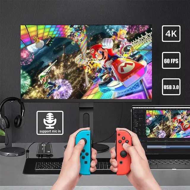 3.[Support Mic-in]Our capture card has microphone input and you can use it to add external commentary when playing a game. Please note: it only accepts 3.5mm jack standard microphone headset.