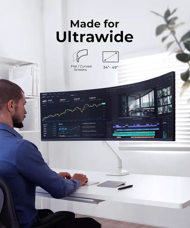 Single & Dual Monitor Arm Ultimate Flexibility Setup Made Simple Just One Finger - GA Monitor Arm Series - Is my flat, curved, or ultrawide monitor compatible with the GA Monitor Arm?