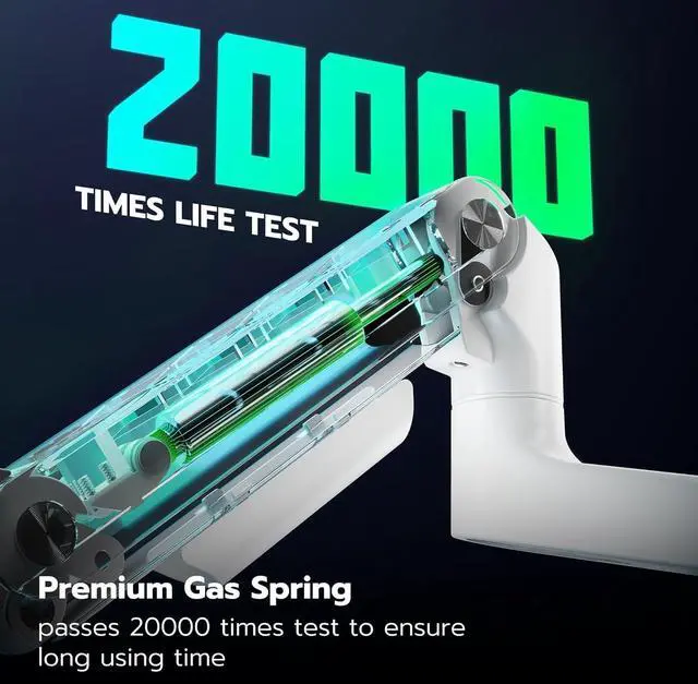Ergonomic FlexibilityWith an 18" extended column, the ARES WING mount offers a remarkable height adjustment of up to 26.3 and an arm extension of 22.3. The gas spring system allows smooth tilting from +50° to -20°, a ±90° swivel, and 360° rotation, offering versatile viewing angles. Whether for immersive gaming or comfortable long-term use, this extensive range of motion enables you to find the ideal position, improving both posture and performance.