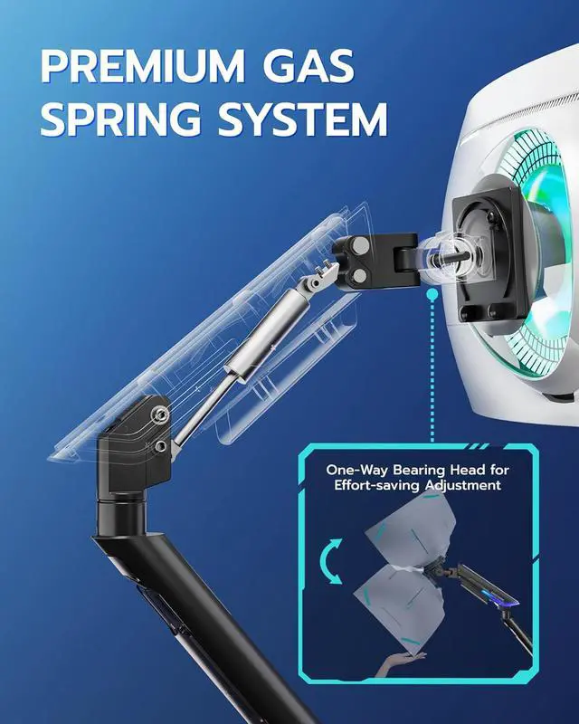 • Immersive E-Sports Design: Built with a sharp, modern e-sports aesthetic, this monitor arm enhances any gaming setup with a clean and powerful look. The streamlined structure and bold contours fit perfectly into competitive gaming rooms, making it an ideal monitor stand or monitor mount for users who want their computer monitor stand to match a true gaming environment