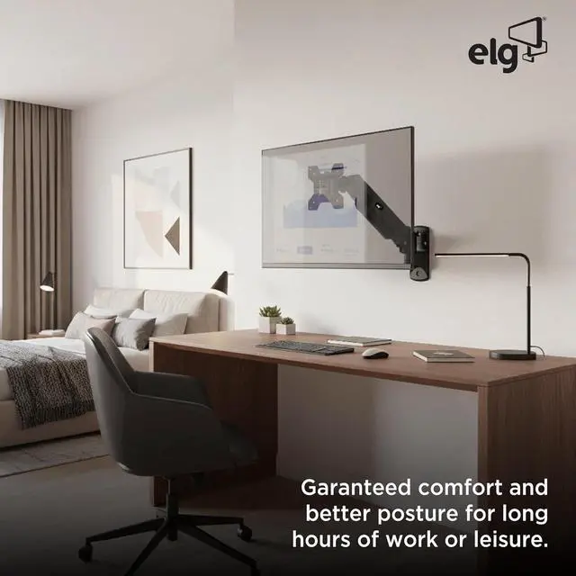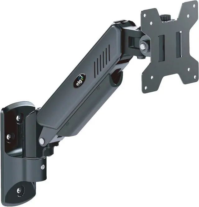 FULL MOTION ERGONOMIC DESIGN: The premium gas spring enables tilt from +70° to -45°, level adjustment of ±90°, 360° rotation, and height adjustment up to 12.2 inches. The wall mount extends 8.26 to 10.03 inches from the wall