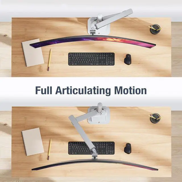 1Extra Tall Pole Design2Monitor Rotation3Monitor Height Adjust4C-clamp & Grommet Mounts5Includes Desk Protectors With a detachable design - after installing the VESA plate on your monitor, you'll only need to hook your monitor onto the arm. No sweat. No hustle.
