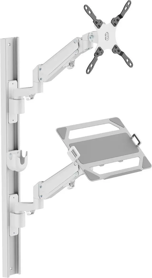 Ergonomic Wall Workstation - This fully adjustable monitor wall mount with keyboard tray and monitor arm offers customizable screen height and tilt for healthcare professionals or work from home setups. Ideal for long shifts, this space-saving keyboard mount minimizes strain and maximizes focuscompatible for clinics using a 32 inch monitor or smaller setup.