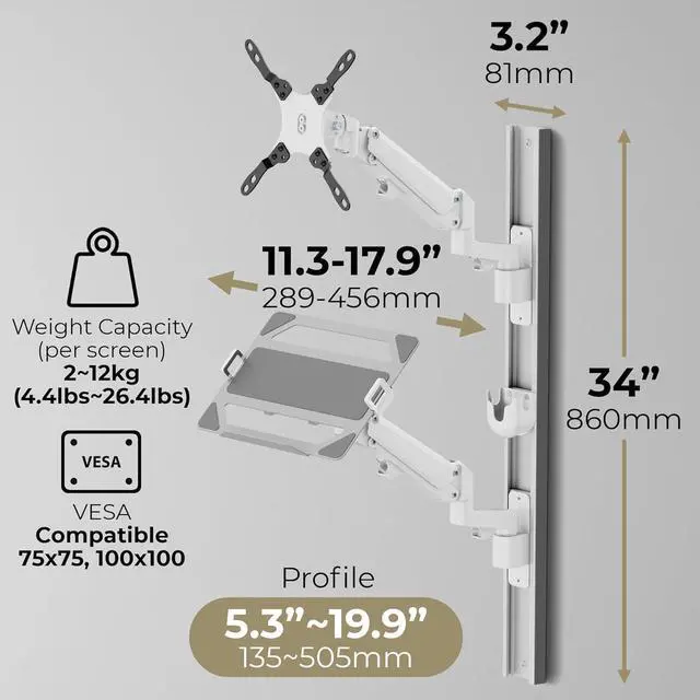 Fast & Flexible Wall Workstation Setup - Install your monitor wall mount with keyboard tray in minutes using the quick-release VESA plateno complex tools required. This versatile wall desk solution supports most monitor arms and integrates seamlessly into any computer desk with keyboard tray setup for instant productiv