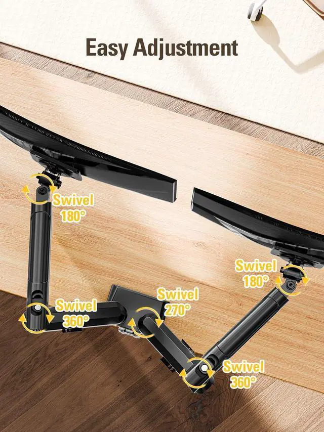 Full Motion Adjustment: Monitor arms with gas spring design allows you to extend your screen up to 21 and rise up to 17.3 in height. It also features +85°/-45° tilt, 180° swivel, and 360° rotation for landscape or portrait orientation, reducing neck and eye strain during long hours of use.