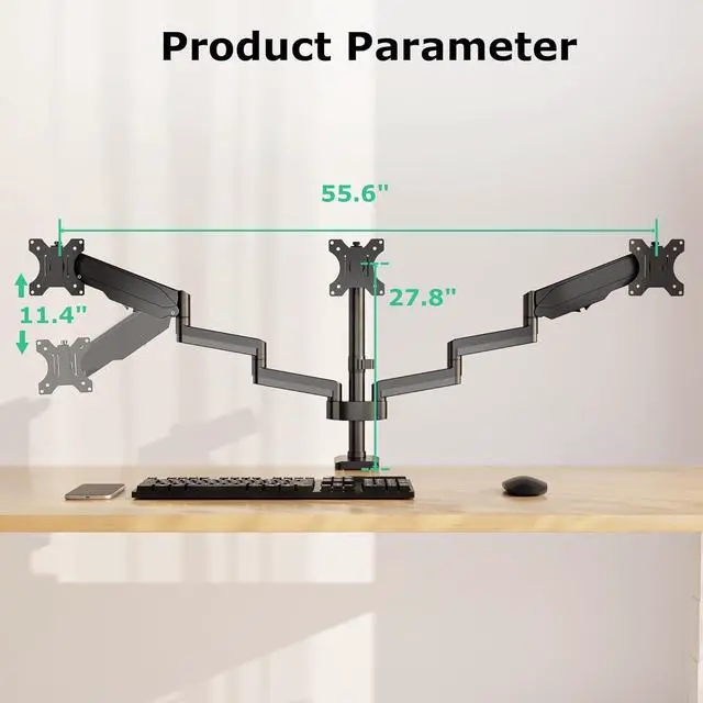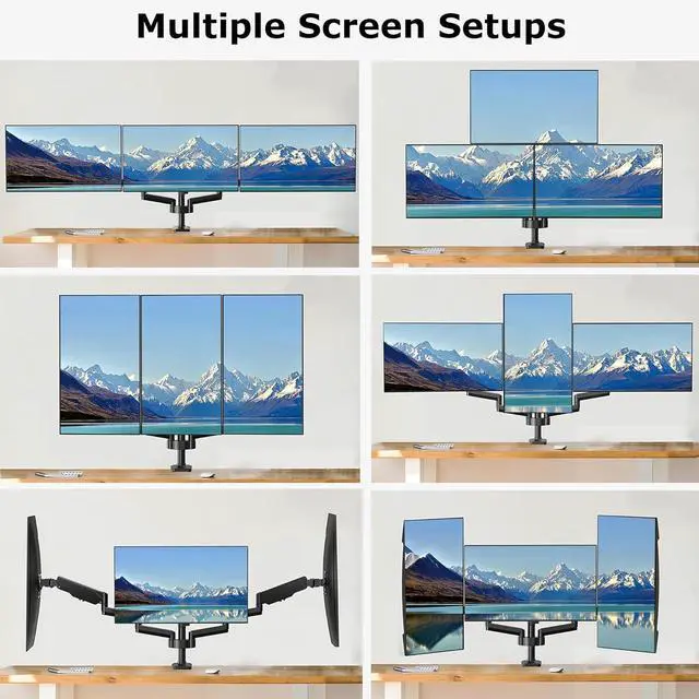 Easy InstallationThe triple monitor mount comes with all mounting hardware, tools, and instructions necessary for assembly. The setup can be completed in 15 min or less. Our friendly and responsive customer support team is available. Feel free to contact us if you experience any issues after receiving your package.