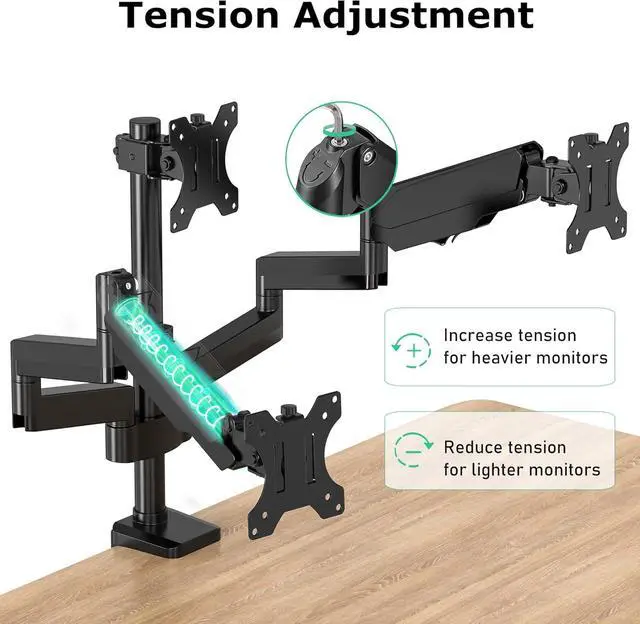 Built to LastThe triple monitor desk stand is made of upgraded steel and premium gas spring arm that has been tested to withstand 25,000 lift cycles to ensure long-lasting performance.
