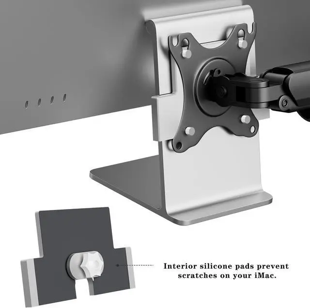Installation is quick and straightforward thanks to the included thumb screws and comprehensive accessory kit. Protective silicone pads are integrated throughout the adapter creating a soft buffer between the metal and your iMac to prevent scratches and damage during installation and use.