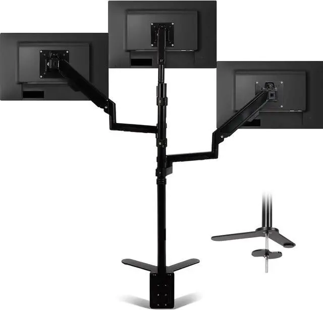 ** **The triple monitor stand is durable and made of cold-rolled steel, which is corrosion-resistant and not easy to rust. The VESA mount ensures a secure fit for curved, flat, or extra-wide monitors, and the thickened bracket tube ensures that the monitor does not droop or tilt forward when in use.