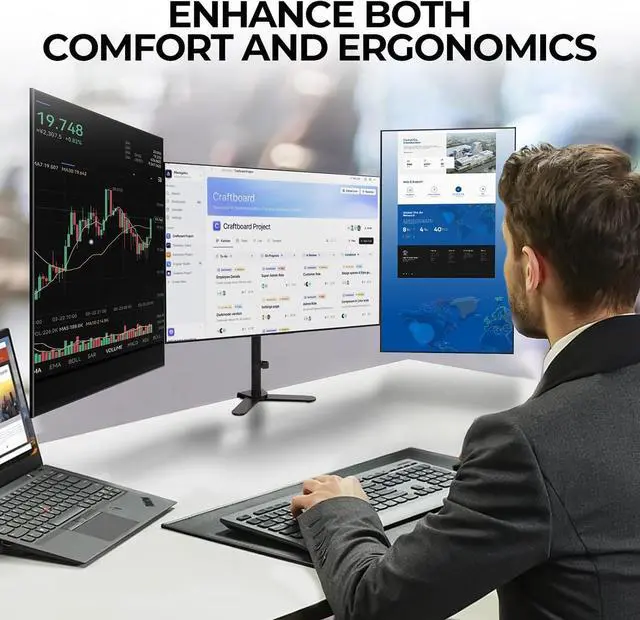 ** **This 3 monitor desk stand has a sturdy construction that supports monitors up to 32" and 19.8 lbs per monitor arm, ensuring stability for both home and office setups. VESA monitor mount compatibility (75x75mm and 100x100mm) allows for easy attachment to most monitors.