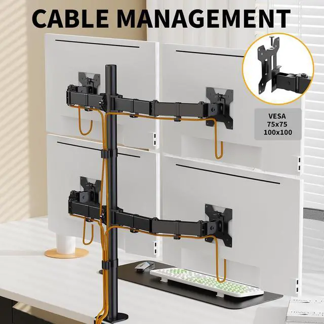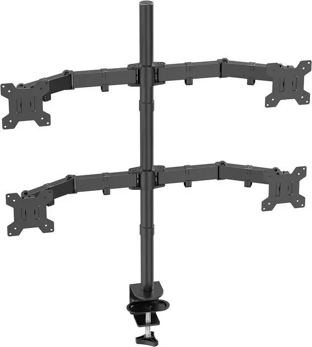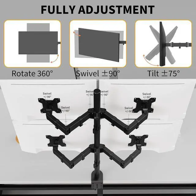 Universal Compatibility: Quad monitor stand fits most four 13" to 27" computer monitors and weighing up to 22lbs per arms which with VESA 75x75mm or 100x100mm mounting holes. Please confirm the screen size, weight, and VESA pattern of the monitor before purchasing.